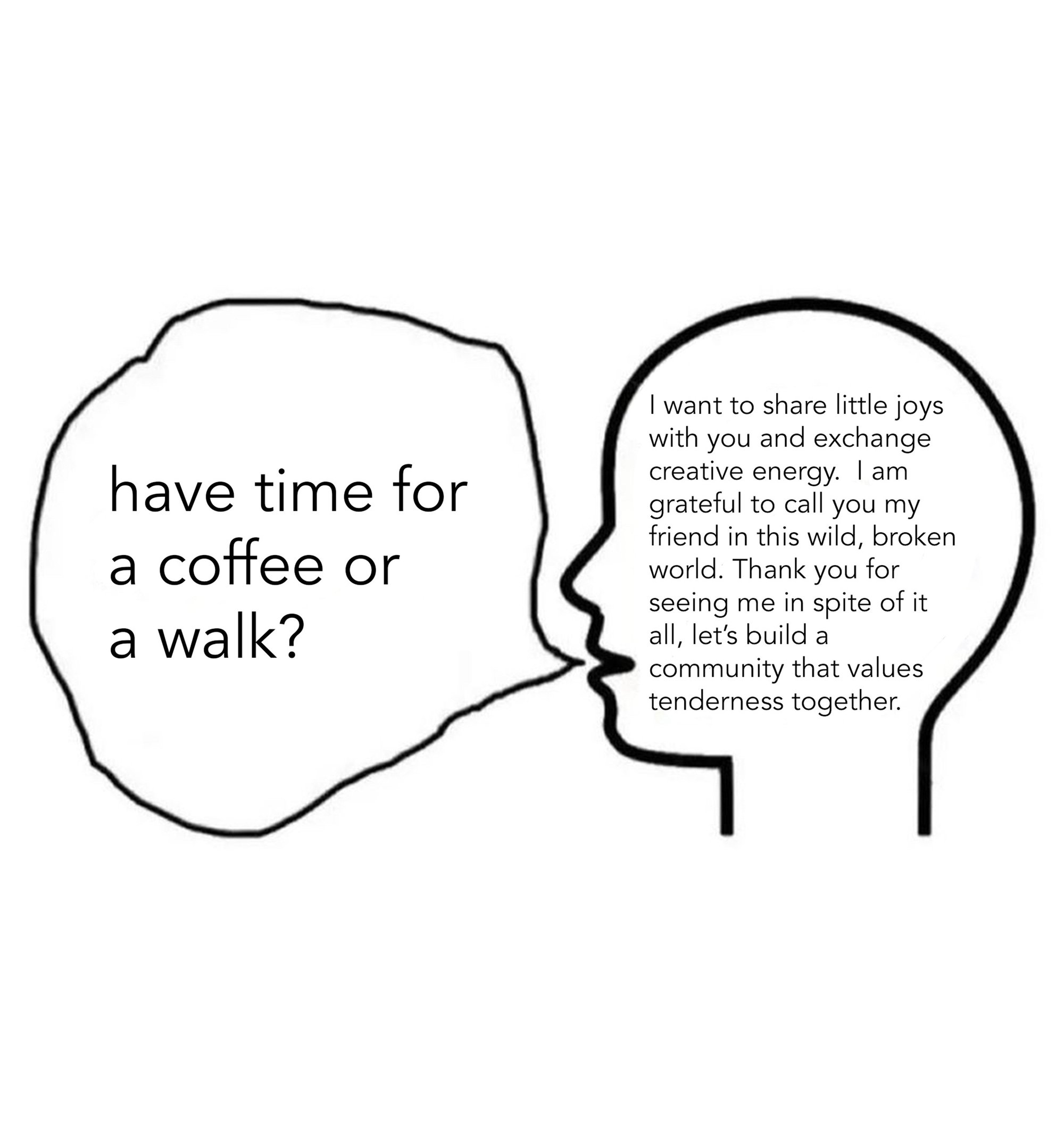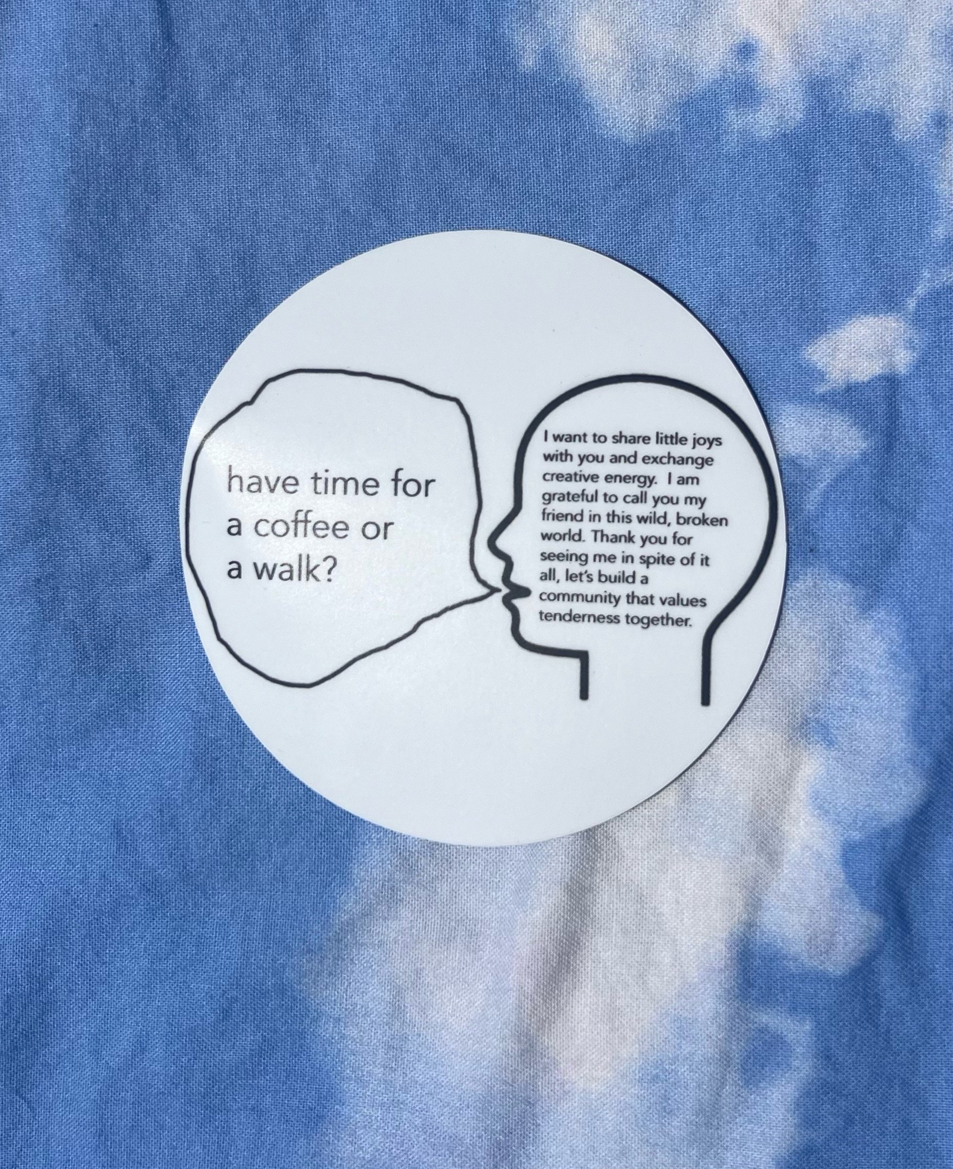 3 inch diameter waterproof vinyl sticker. A hopeful sentiment, an invitation for community even when the words don't all come out right. Free shipping on stickers :)