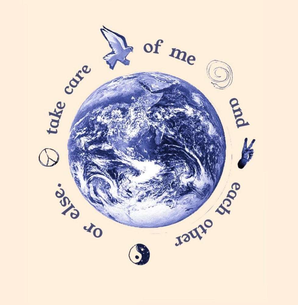 Take care, or else. Protect your head with a soft 100% cotton denim cap with earth and human loving embroidery. Adjustable buckle back.